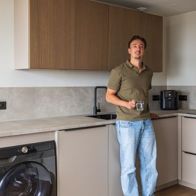 Omdat er door die aanpassing geen plek meer was voor de wasmachine in de badkamer, kwam SMAAK Keukens met een slimme oplossing: de wasmachine én droger plaatsen in de keuken. In eerste instantie was dat een gek idee, maar eigenlijk was ik direct overtuigd. Het oogt netjes, de wasmachine past mooi bij de uitstraling van de keuken en het levert ons zelfs een praktisch voordeel op: een extra ruim werkblad waar ik meteen de was kan vouwen. Ideaal!